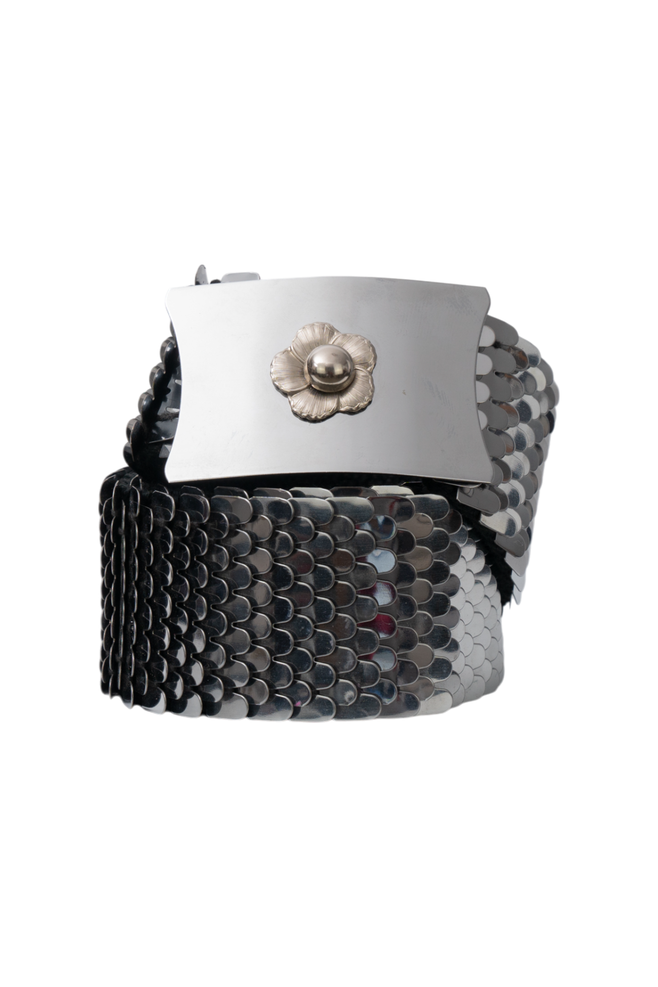 Y2K Silver Mirror Buckle Belt, 27 to 36.5"