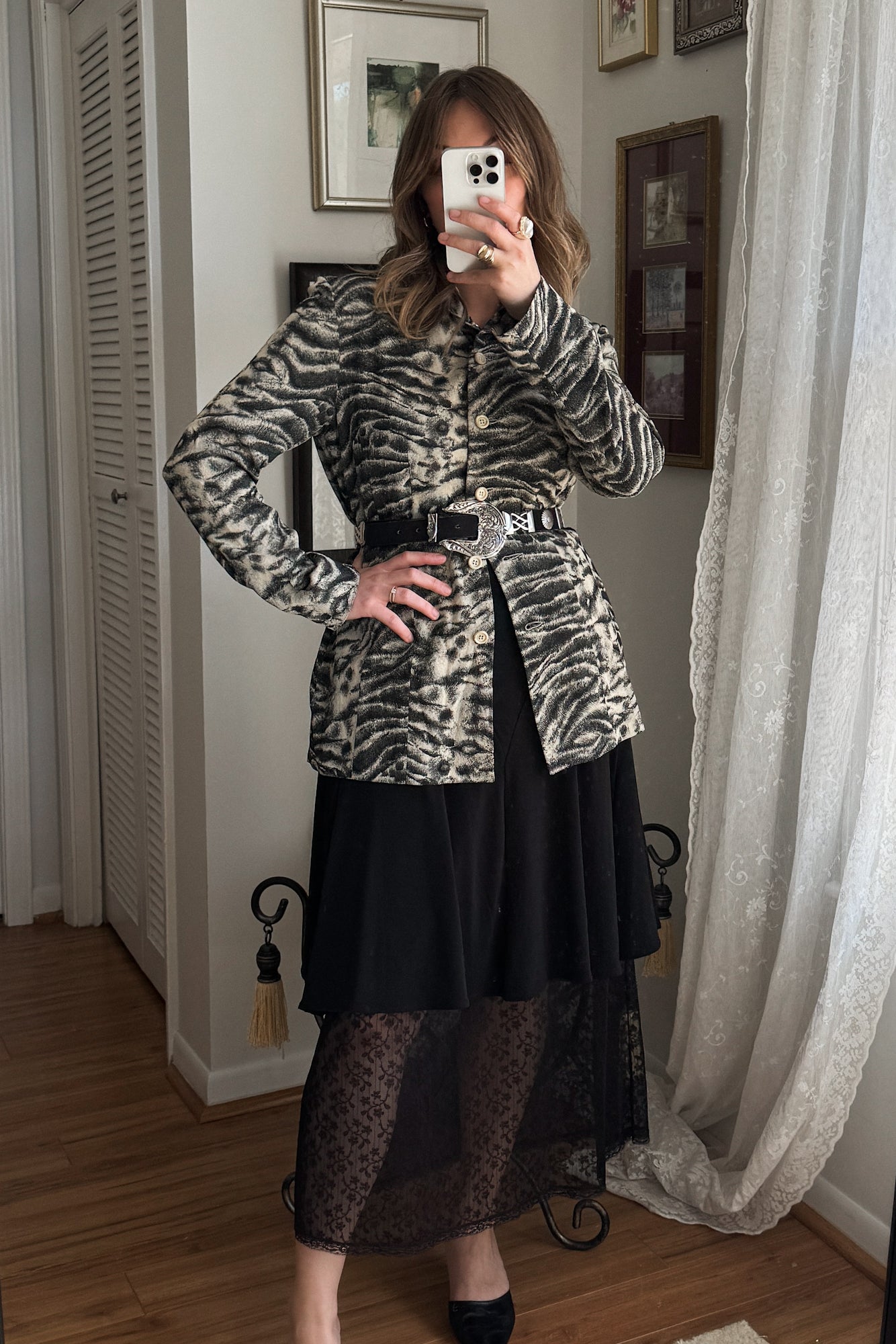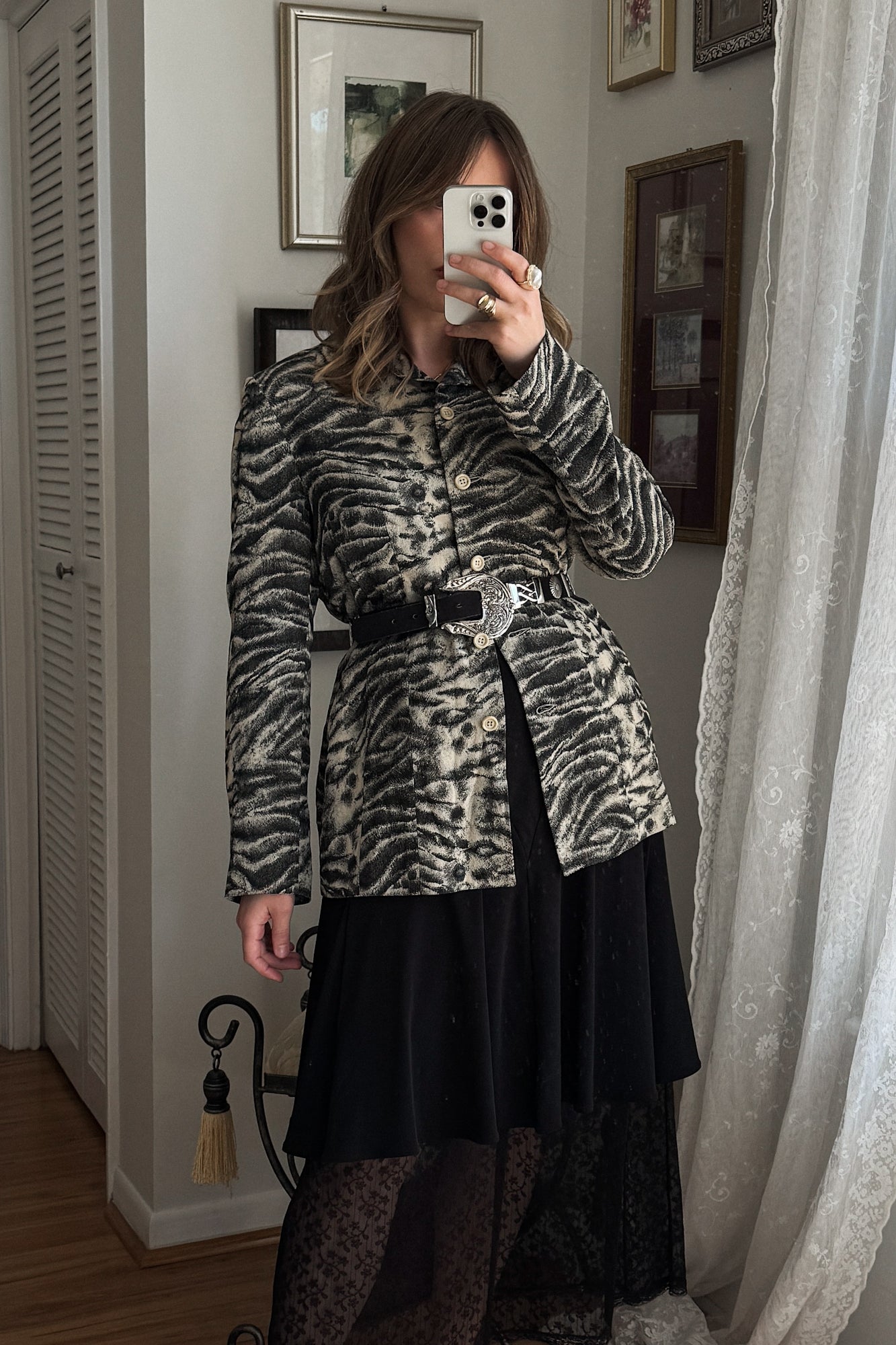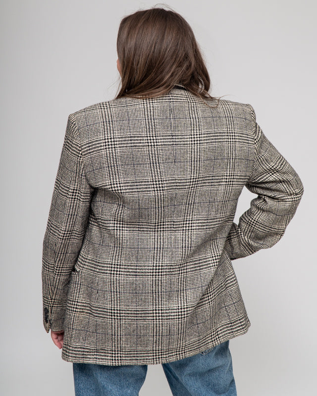 Vintage 70s Houndstooth Plaid Wool Blazer