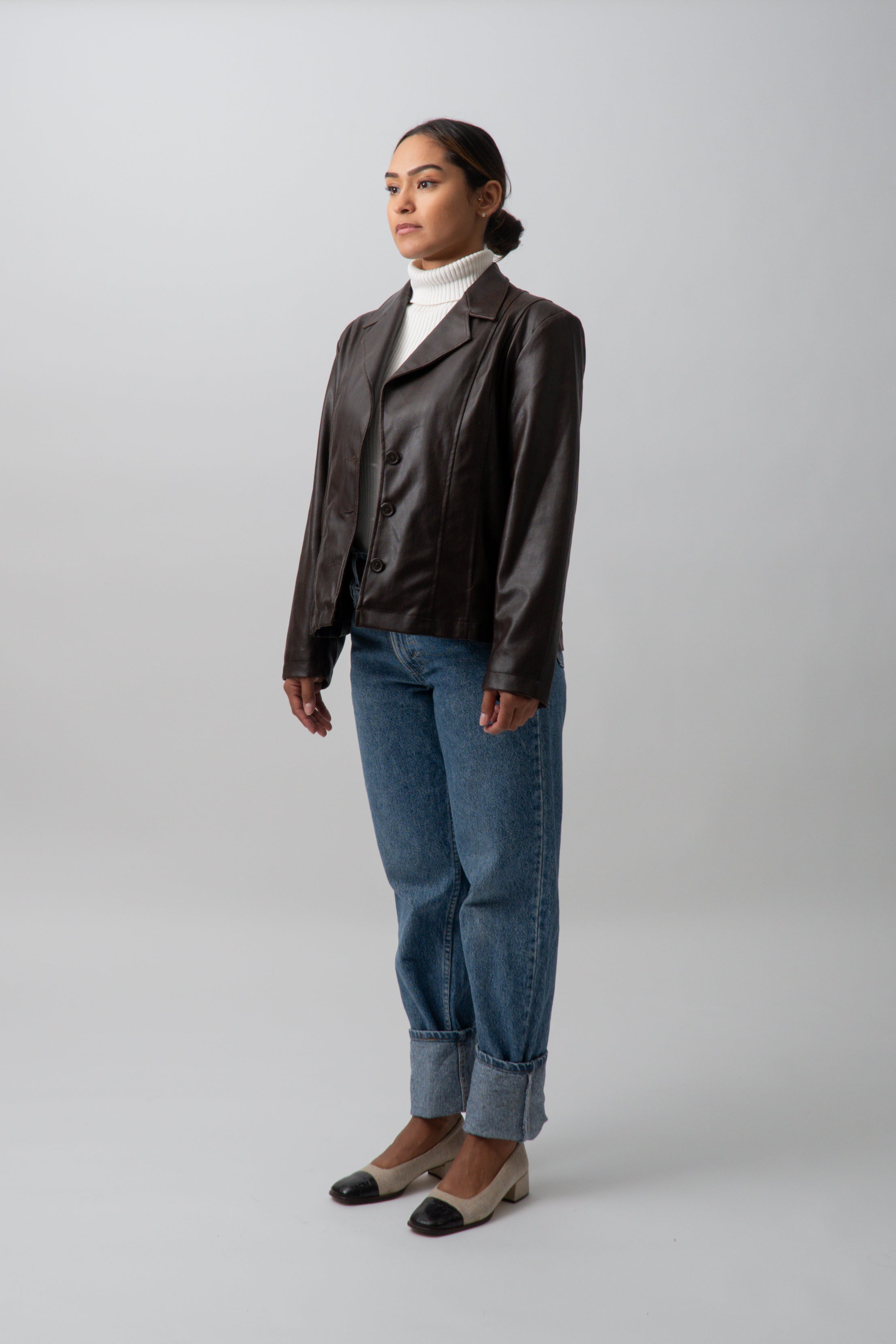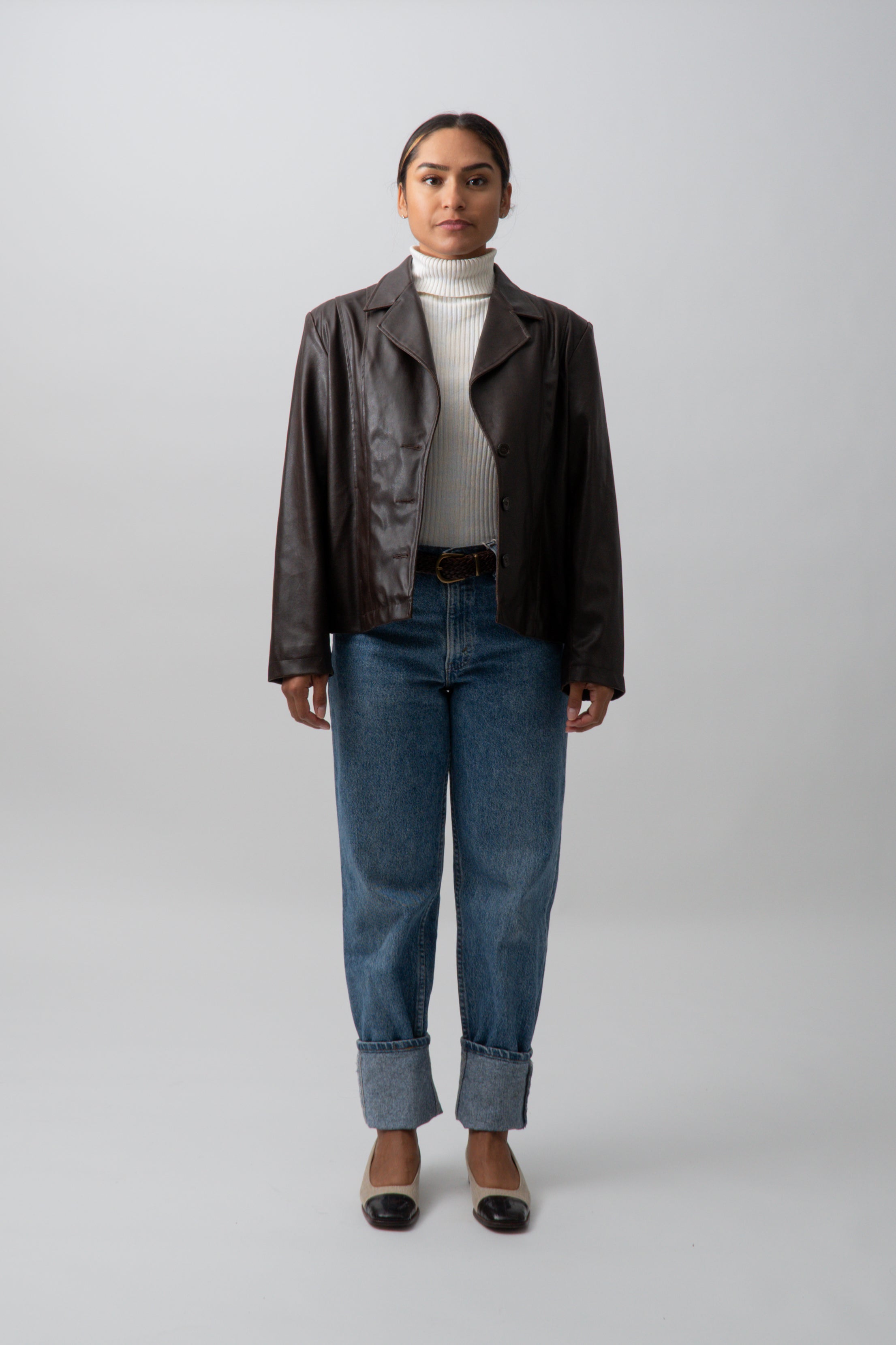 Vintage 90s Faux Leather Brown Blazer Jacket