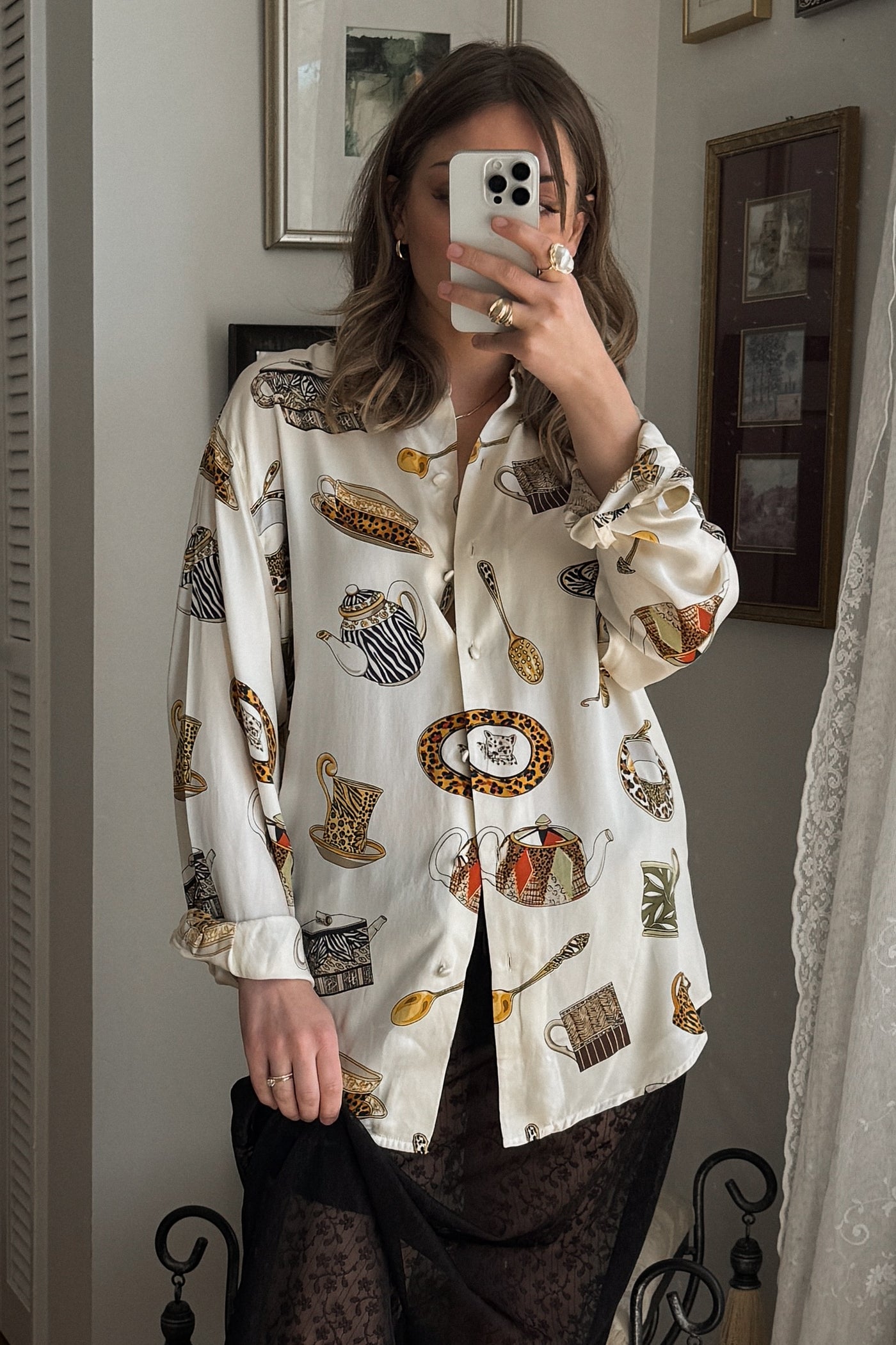 Vintage 100% Silk Animal Print Button-Up