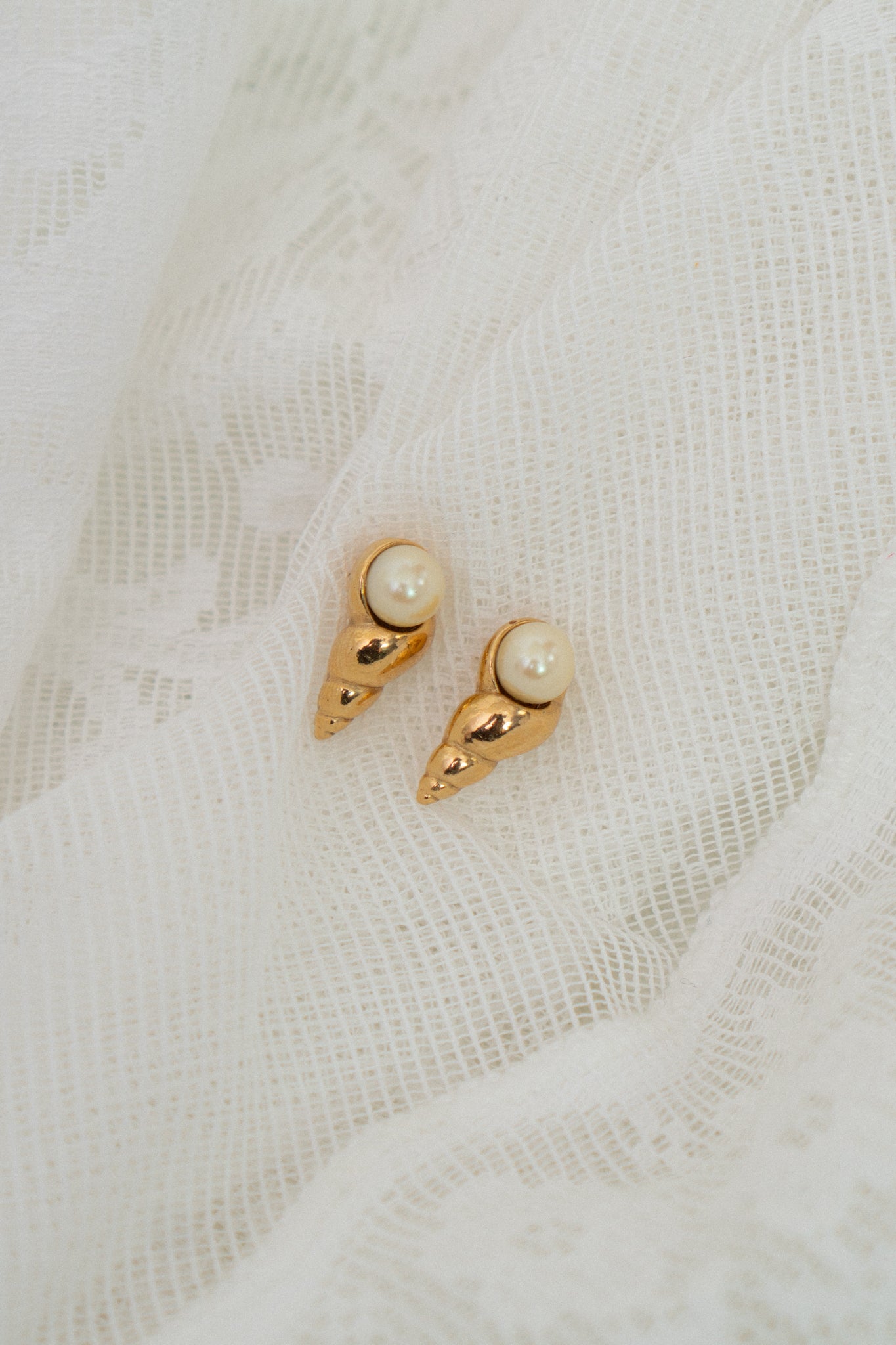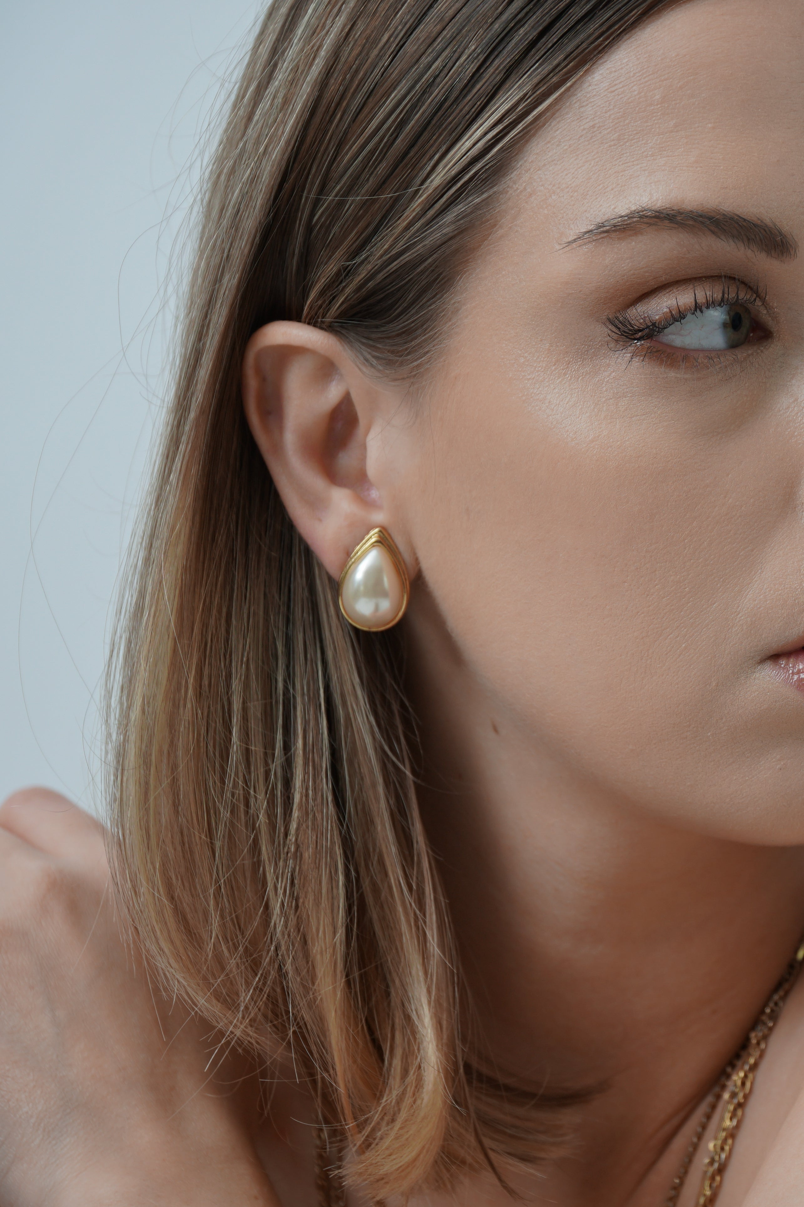 Vintage Gold Faux Pearl Tear Drop Earrings