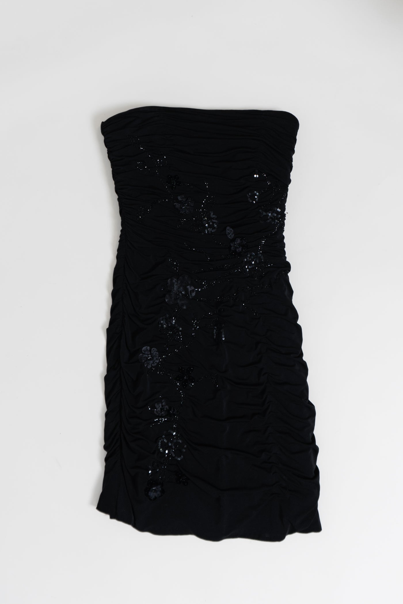 Y2K Black Ruched Beaded Strapless Dress