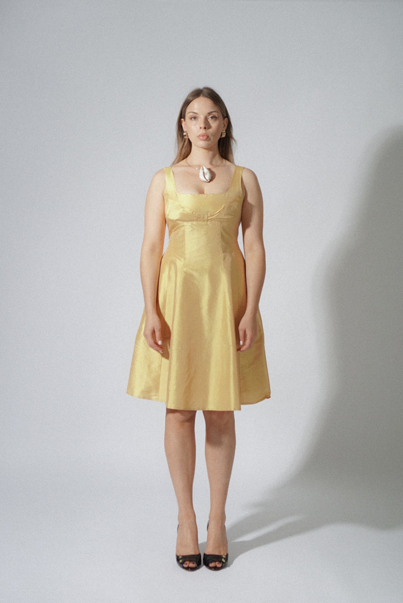 Vintage 90s Metallic Pleated Halter Gown