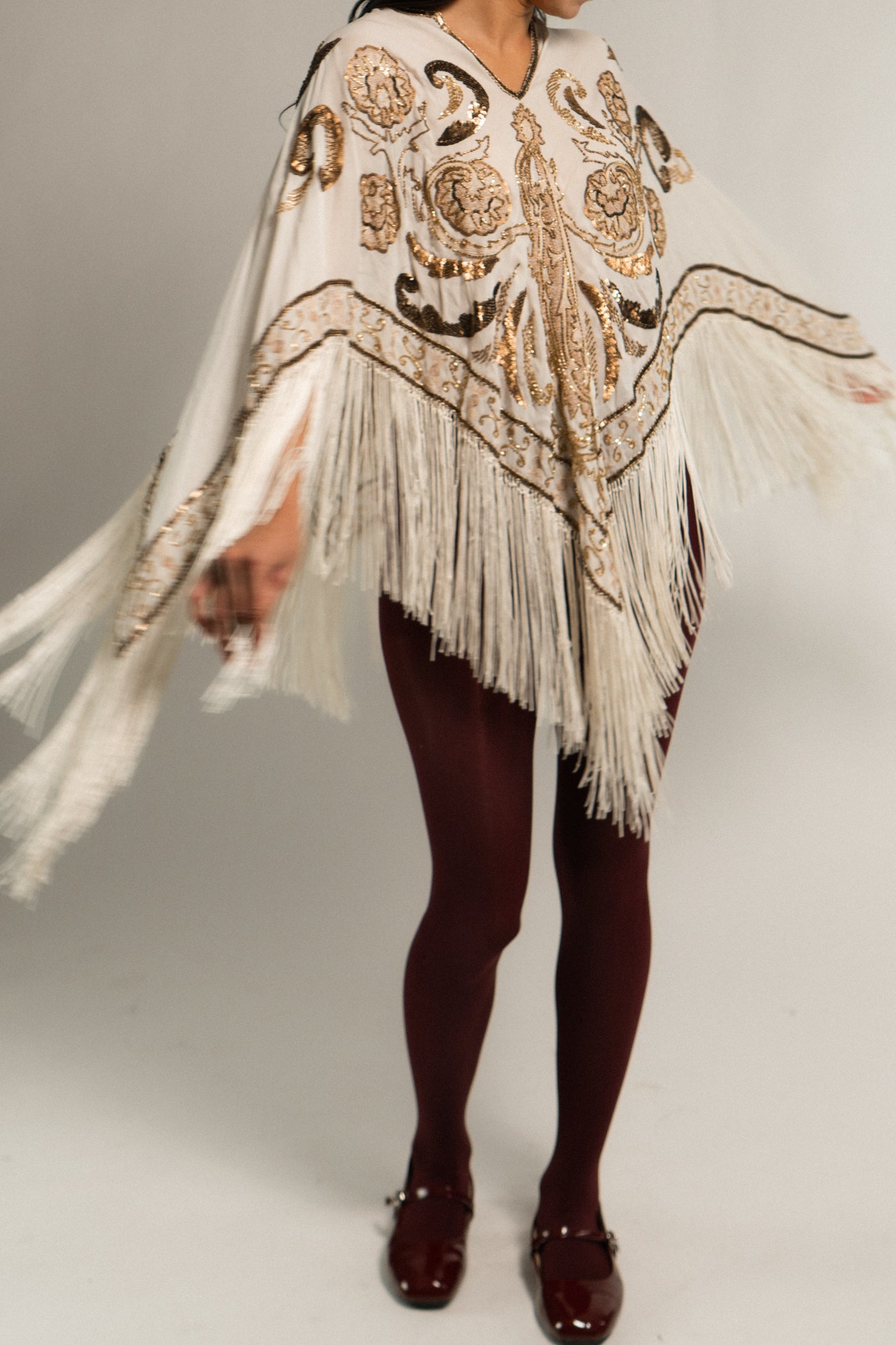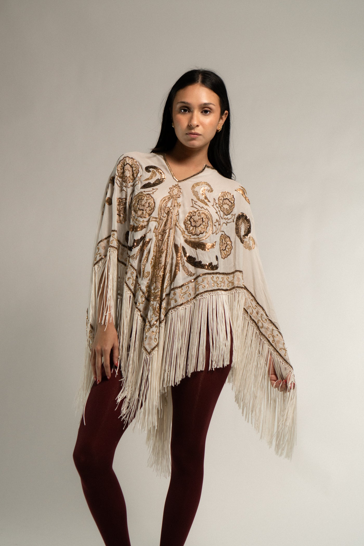 Vintage Silk Beaded Piano Style Shawl