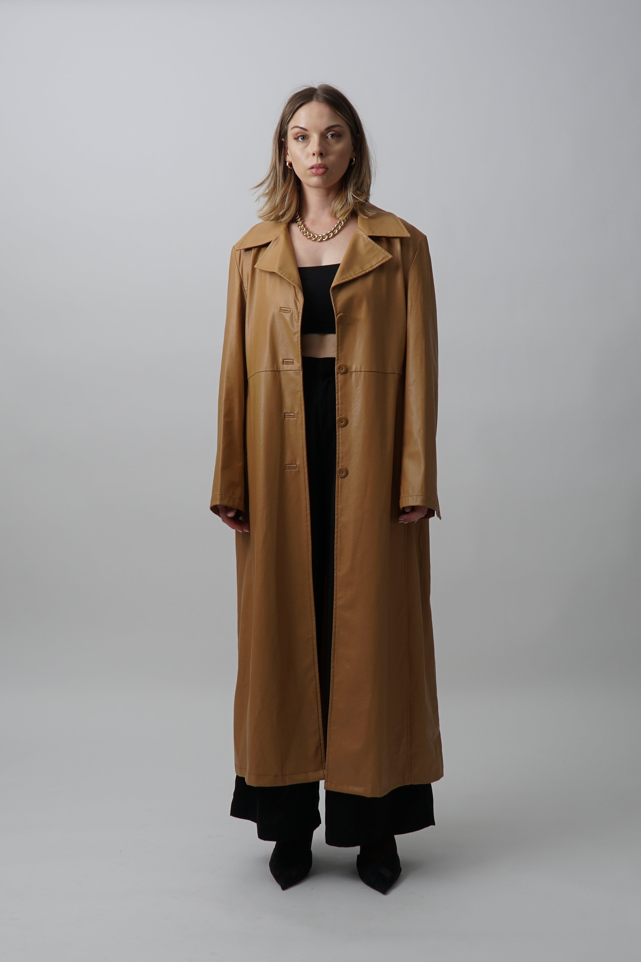 Vintage 90s Faux Leather Brown Blazer Jacket