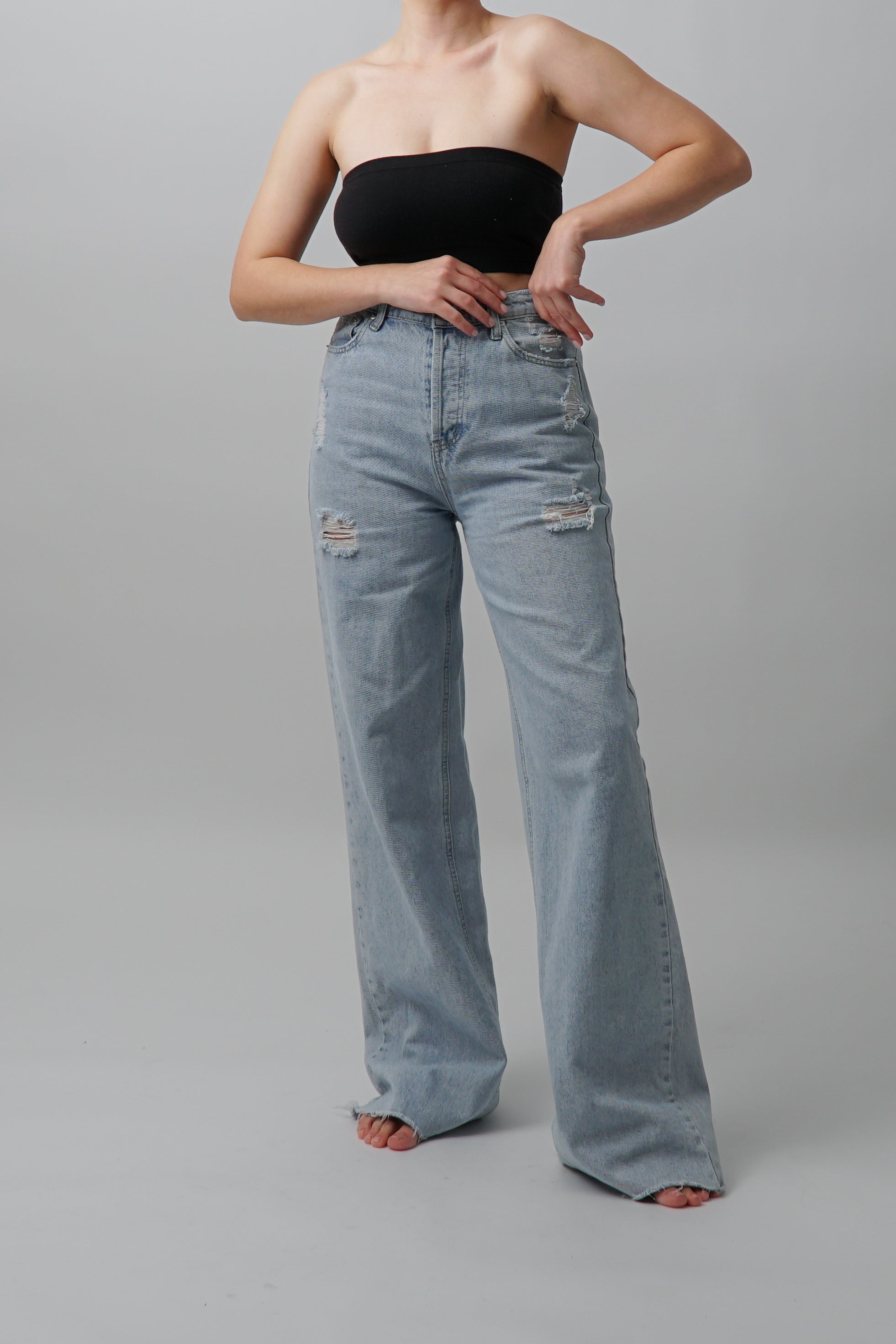 High Waisted Wide Leg Lightwash Denim Jeans