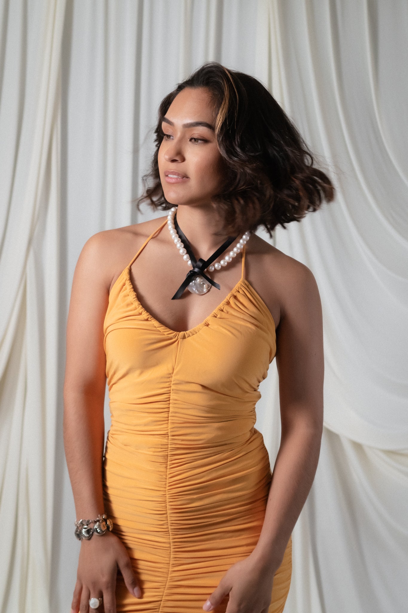Y2K Sunset Orange Ruched Halter Dress