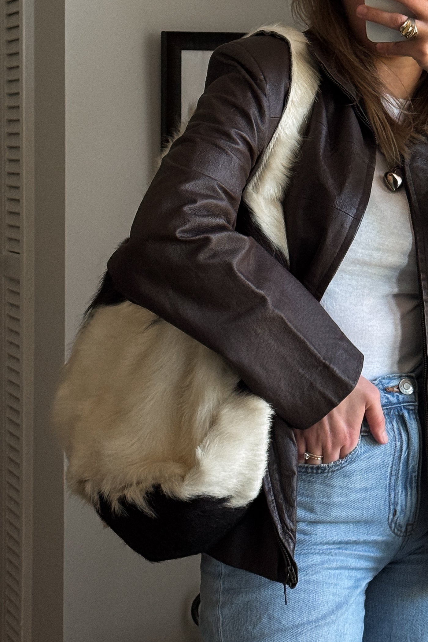 Italian Genuine Calf Hair Suede Fringe Bag