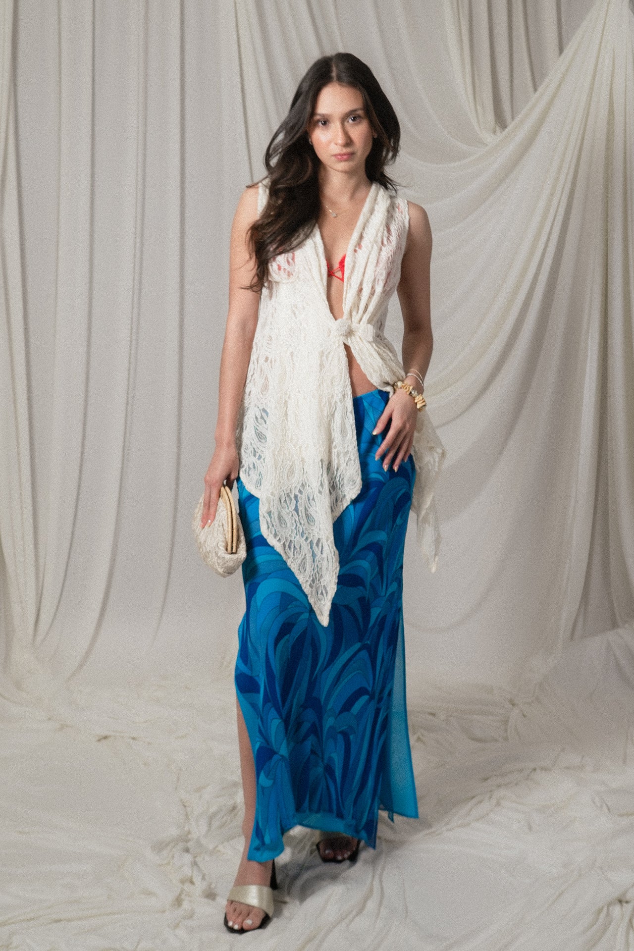 Vintage 100% Silk Royal Blue Zebra Skirt