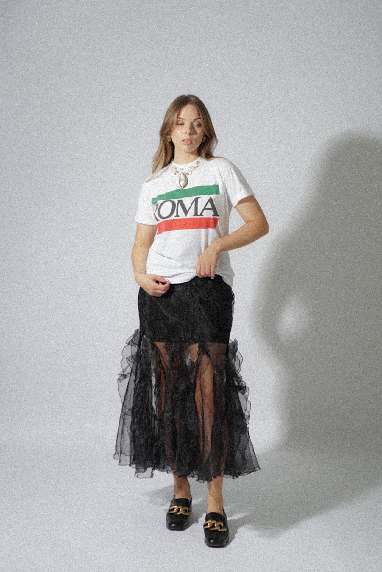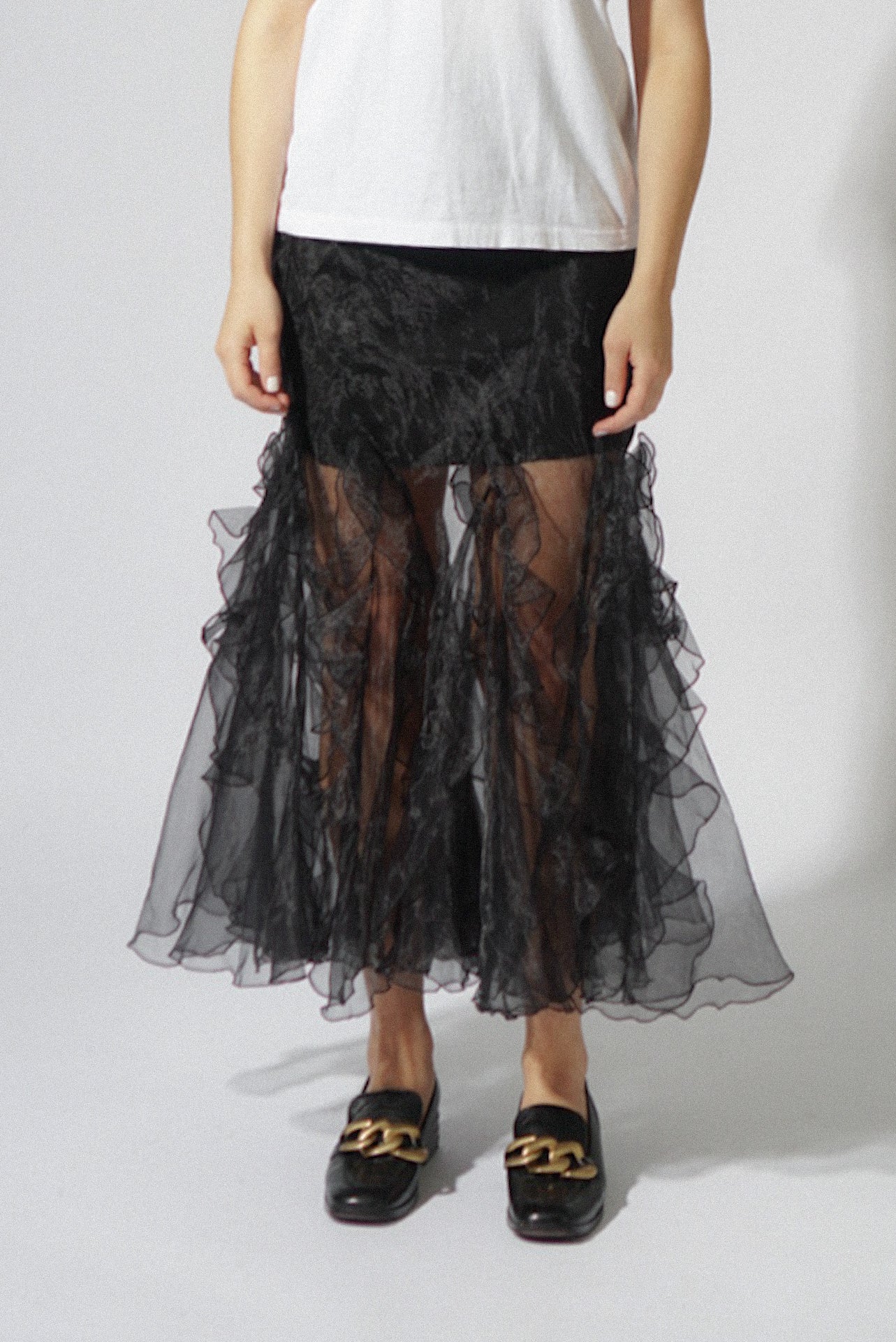 Y2K Brown Chiffon Geometric Bias-Cut Skirt