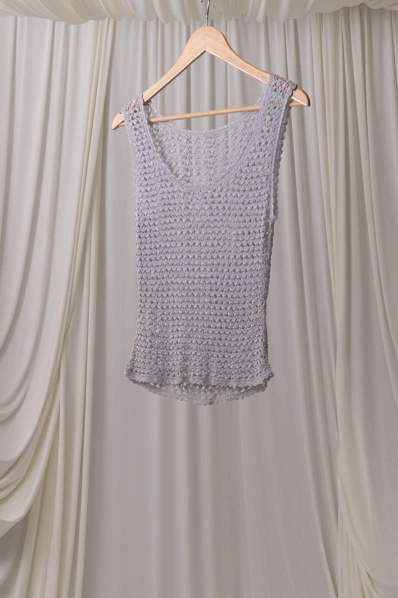 Vintage 90s Satin Jewel Crinkle Tank Top