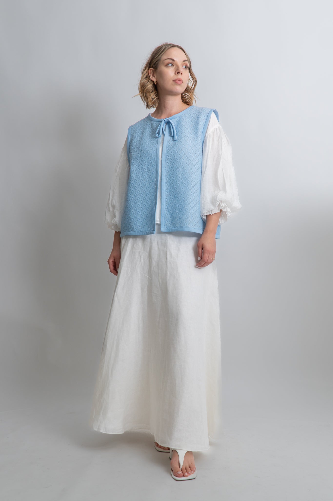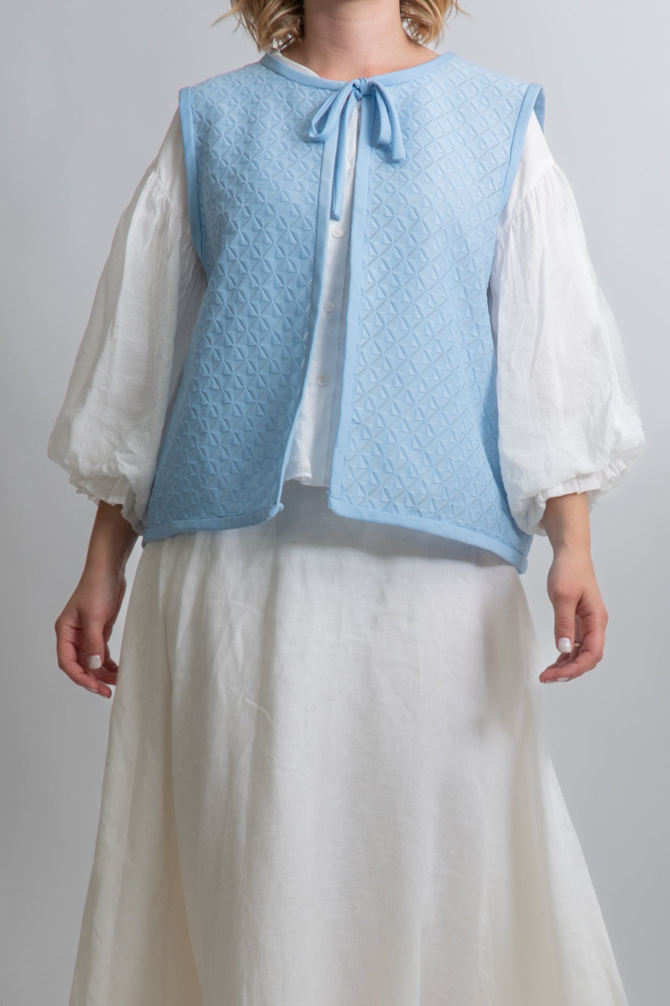Vintage 70s Baby Blue Knit Collar Tie Vest